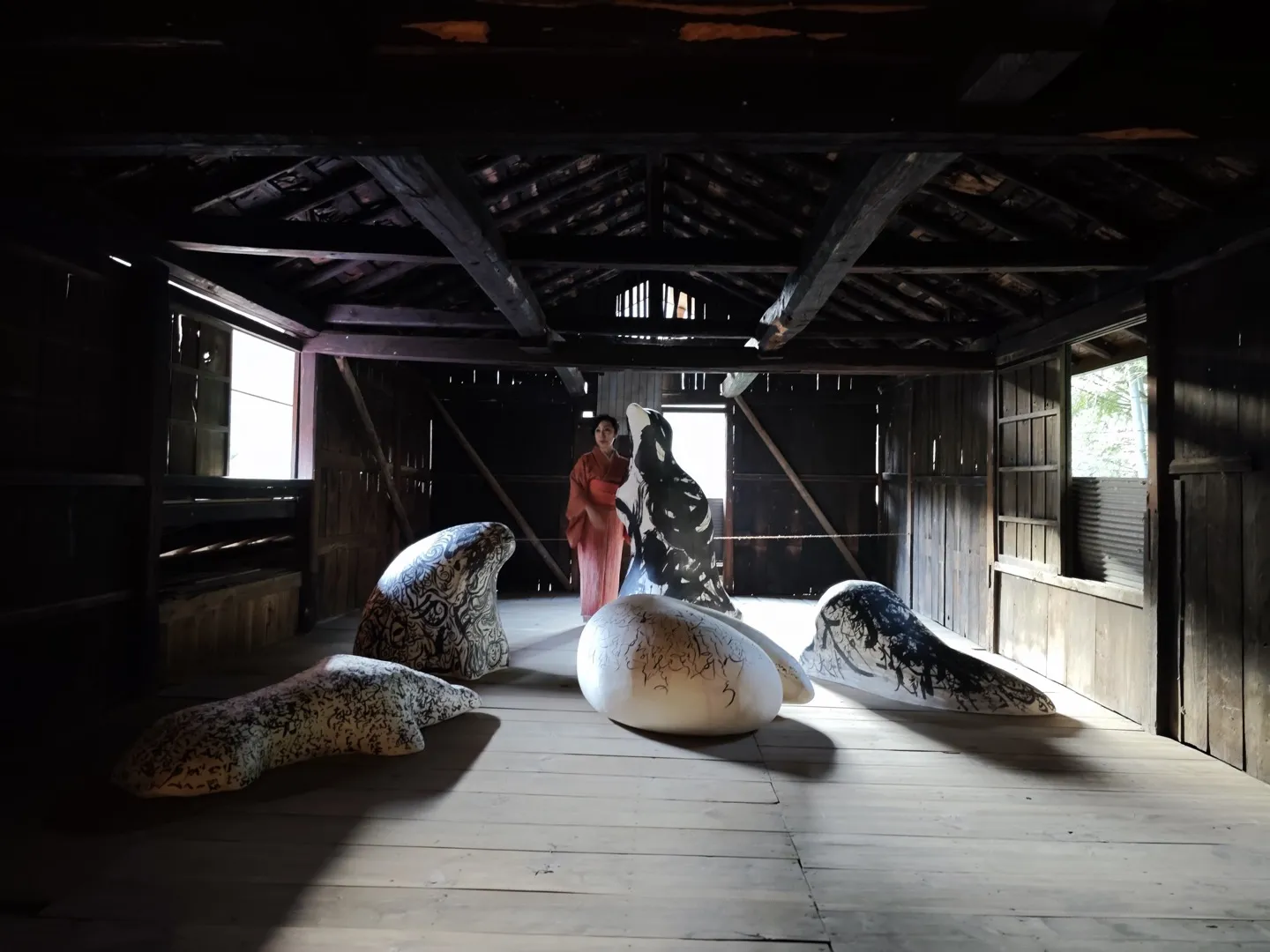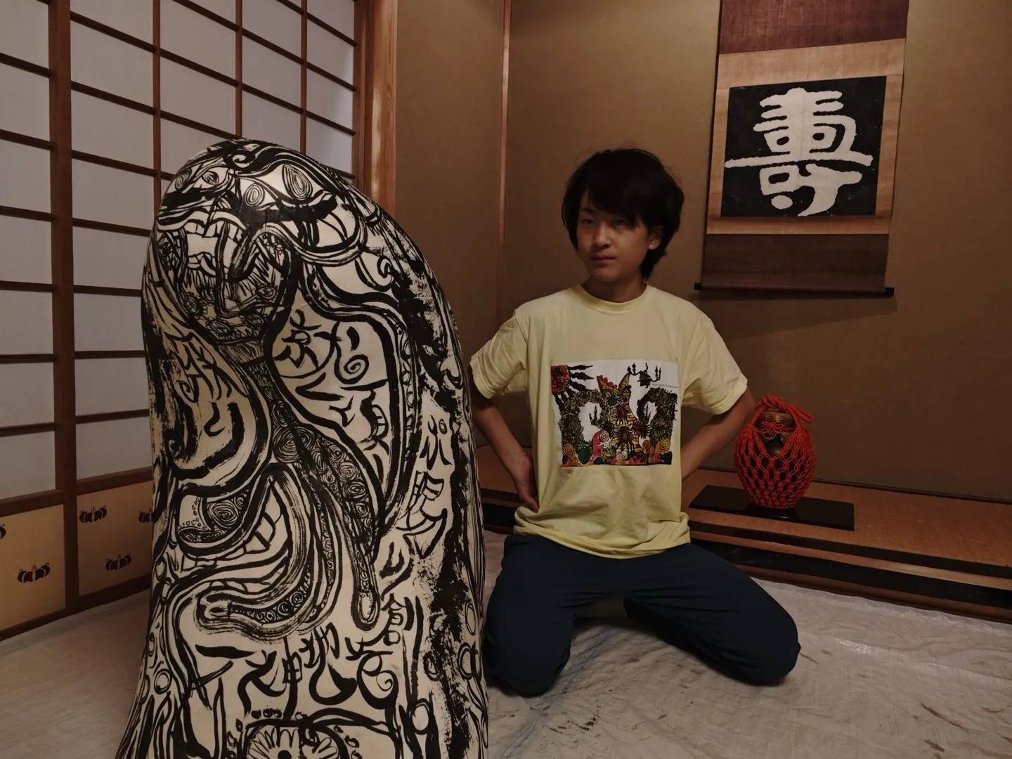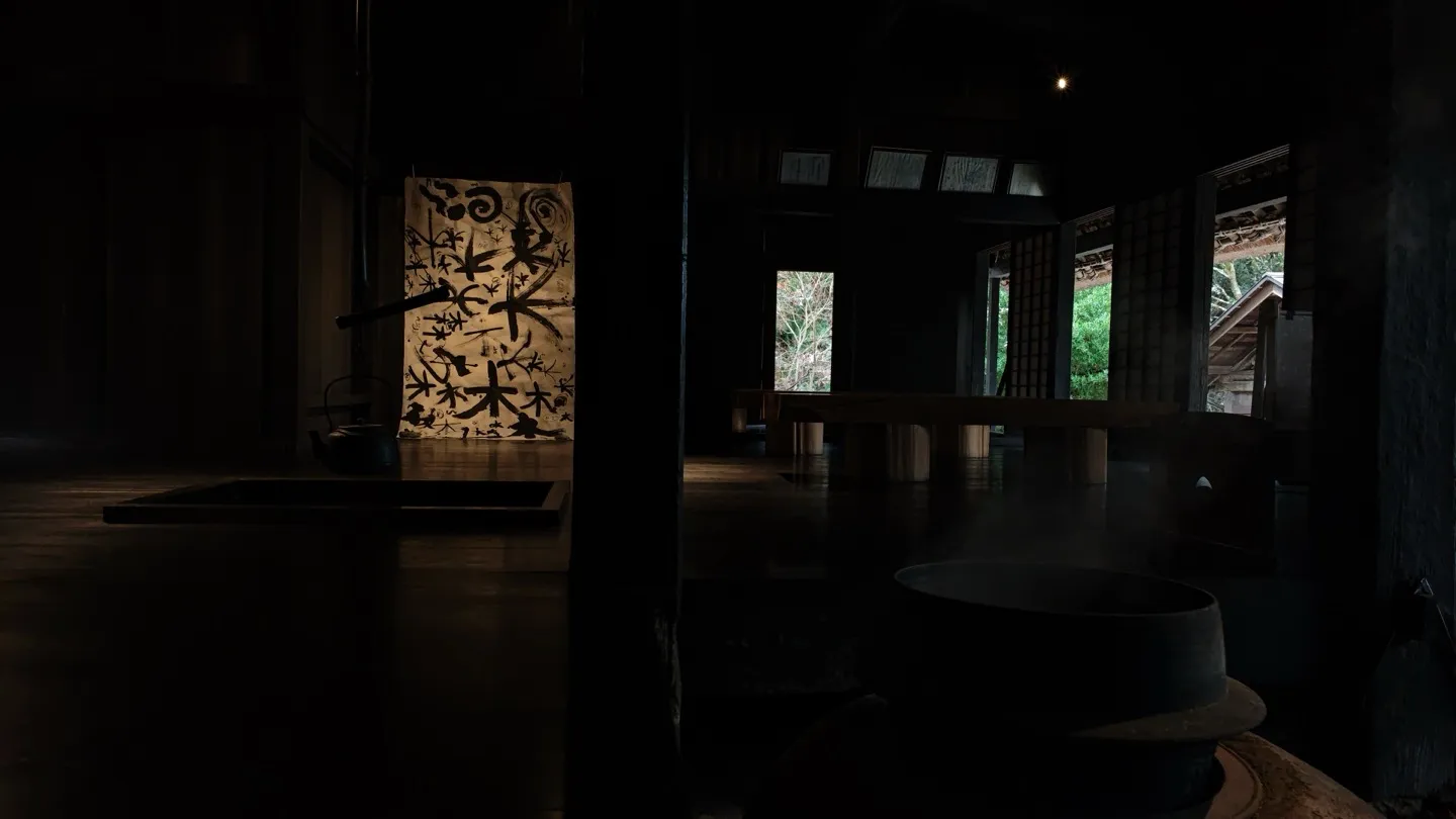 江戸と多摩:檜原村が循環し豊かな文化をつくりだしてきたエコシステムを主題として、異なる世代と分野で活躍する5人の「現代文人」が、これからの Society 5.0 時代における書道の可能性を作品化。 古より檜原村の資源として江戸の粋を支えてきた楮からリサーチベースで和紙をつくる北村春香が村で漉く和紙をもとに、書家・川邊りえこが、詩人、マルチクリエーター、十代気鋭のアーティストをディレクションした、地域に息づくおおかみ信仰をモチーフにした立体書作品と、メディアアーティスト・落合陽一が、山の伝統からインスパイアされた可能性を、書を中心に空間として展開します。
